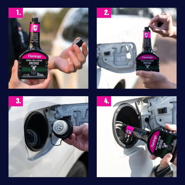 Boost your diesel engine’s performance with Flamingo Diesel Fuel System Dredge 354ML This advanced cleaning formula is specially designed to remove harmful carbon deposits, clean fuel injectors, and restore fuel system efficiency in diesel vehicles.